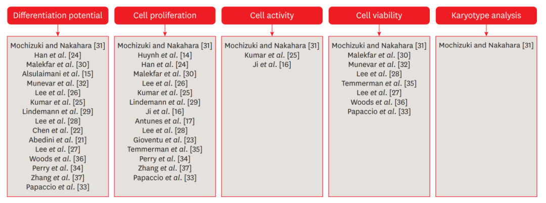 不同研究對干細胞活力分析的情況