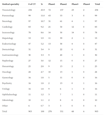 各種不同醫(yī)學學科間充質(zhì)干細胞的臨床試驗分布表格