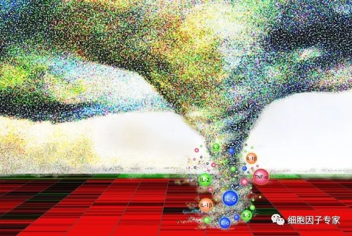 細胞因子風暴(cytokine storm)是指機體因劇烈刺激(如感染微生物)后引起體液中多種細胞因子如TNF-α、IL-1、IL-6、IL-12、IFN-α、IFN-β、IFN-γ、MCP-1和IL-8等迅速大量產生的現象,是引起急性呼吸窘迫綜合征和多臟器衰竭的重要原因。
